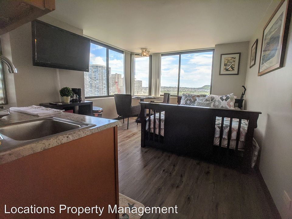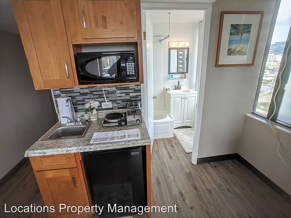 Furnished Studio, $1,150.00, All utilities included @ Hawaiian Monarch, Waikiki - KEY FEATURES Year Built: 1979 Sq Footage: 247 Sq Ft. Bedrooms: studio Bathrooms: 1 bath Parking: No parking Lease Duration: 6 Months Pets Policy: No pets Laundry: Coin-op laundry room This 18th floor, furnished Studio is conveniently located at the entrance of Waikiki with marvelous views of the city. It includes a queen size bed with drawers, a dresser, dining table with two chairs, laminate floors with granite countertops, a flat screen TV, microwave, hotplate, small fridge, a coffee maker, kitchenware, silverware, and linen. Just bring your suitcase. Within walking distance to Waikiki Beach and Ala Moana Shopping Center. Electric, Water, Sewer, Trash, basic cable & internet included in the rent. Amenities include pool, Jacuzzi, recreation area, fitness room and community laundry 6-month lease term; application fee to apply $35 per applicant over 18. No pets & no smoking. Renter's insurance required Gavin Baer, REALTOR-ASSOCIATE RS-46925 Locations, LLC Property Management Division 614 Kapahulu Avenue #102 Honolulu, HI 96815 No Pets Allowed (RLNE5667770)