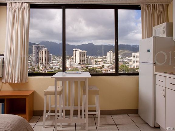 Rent includes all utilities including Cable TV and WIFI. Security deposit is equal to one month rent. This apartment has a Queen bed and a kitchenette, microwave, full size refrigerator with private bathroom /shower. Tile Flooring. Remodeled private bathroom with walk in shower. Large pool, great sun deck with sun all day, BBQ located on pool deck. Large laundry room located on property. There is also an exercise room. This property includes restaurants, pizza, and Sundry shop Located at the corner of Niu Street which is one block Diamond Head of McCully Blvd and the Ala Wai Canal. Verify with parking attendant located on ground floor: Estimated at @225 per month. (Must verify). Rent plus Hawaii 4% General Excise Tax.