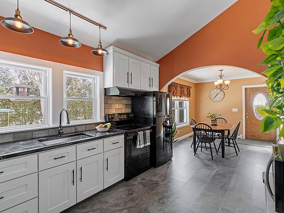 Welcome to your dream home nestled in a serene neighborhood, where every detail has been carefully crafted to create a perfect blend of comfort, convenience, and style. This immaculate property boasts 3 bedrooms, a full bath, and a thoughtful open concept layout with cathedral ceilings in the living room and kitchen, inviting you to embrace the warmth of the inviting living and dining area. The heart of the home features custom-made cabinets in the kitchen, providing both elegance and practicality, while the one-level living design offers unparalleled convenience and an air of spaciousness. Venture downstairs to discover the full basement, a treasure trove of possibilities, where the "man cave/media room" awaits, providing the perfect escape for relaxation and entertainment. Adjacent to it, a utility room and storage area offer ample space for all your practical needs. The basement provides an additional room with the flexibility to accommodate your unique lifestyle, whether as an extra bedroom or a dedicated office space. The meticulously maintained interior and exterior reflect the pride of ownership and care lavished upon this home, while the expansive backyard beckons with its custom-made swing, slide, and kids' cottage – a haven for endless laughter and cherished memories. The detached insulated garage is perfect for one vehicle, ATV/motorcycle storage, general storage, or a hobby shop. This home is available for sale with all furnishings included, if preferred.
