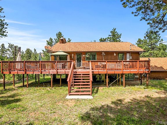 Lovable, move-in ready horse property mountain get-away with Starlink* allows for work-from-home with the privacy of 5 acres of pine forest. It is mere steps from your log and stone home to the barn to hop on Black Beauty and ride every morning on the trail adjacent to the property. Brush her down and take a soak in your private hot tub on the huge deck. Saunter by the ample kitchen for a cup of Joe as you head down the hall to the large primary ensuite with room for another living area complete with couches and tv. 3 bedrooms, laundry and a great room are below you on the main floor. Close to shopping in Pine, Conifer and Evergreen and an easy commute to Littleton, Denver or Golden, you'll love also being close to trailheads for hiking, riding, off-roading and more.
