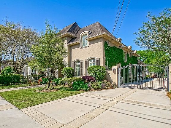 Custom Built Entertainers Dream Home w/Architectural details throughout! Courtyard w/water fountain, gas lanterns. Gourmet kitchen w/island, SS GE Monogram appl., granite. Wet bar w/ice maker. Travertine & wood floors throughout the 1st fl. Triple crown molding. Spacious Den w/Fireplace, built ins, 10 & 12 ft ceilings. Formal Dining Rm., Office, Bar Room, Gameroom, 4/5 BR, 4.5 BA. Easy access to I10. Rare oversized 62X162X50X156 lot for cars, boat, RV - big enough for pool. Security cameras. Auto gate.