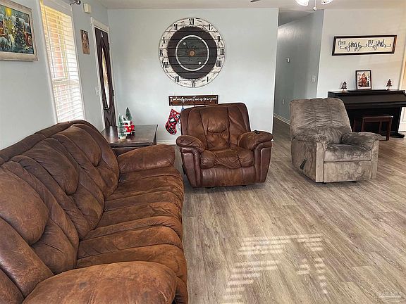 Perdido, AL!! This charming 3 bedroom/ 2 bathroom open concept ranch has it all. You're sure to fall in love with it's charm. The brick front porch welcomes guests to take part in all this distinctive home has to offer. Enter the home and the spacious living room is sure to be the center for entertaining and comfort alike. The kitchen features ample cabinet and counter space.The nearby laundry room also acts as a mudroom off the spacious fenced backyard. When the day is done, lose yourself in the privacy of this home's beautiful master suite. The large sleeping area includes double walk-in closets, while the spacious master bath boasts a spa tub, shower, and double vanity. The two additional bedrooms host a shared bathroom. This home also provides plenty of outdoor space for either entertaining or for sports and children's activities. New roof & A/C in 2021. Call today for your private showing!!
