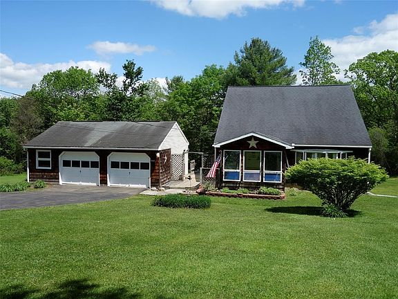 Unique Cape Cod with a loft on 5.5 acres. This charmer has been a three bedroom in the past and could be again. An oversized two car garage with a workshop provides ample storage. The two pellet stoves supplement the electric heat. Three paddle fans add to the comfort level. The enclosed porch, screened porch and small patio provide seasonal choices to enjoy the privacy of your home and acreage. The staircase is solid oak and the doors are six panel. Chenango Forks schools.