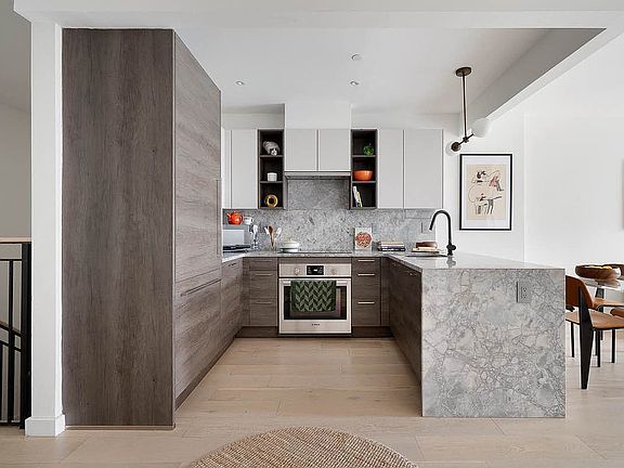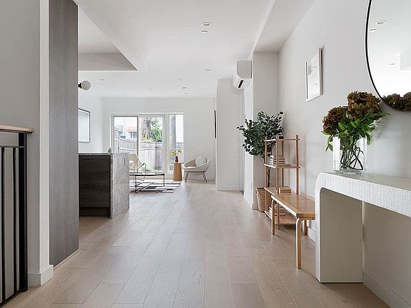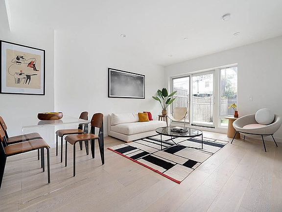 444 Pulaski Street — A rare chance to own the largest residence in this intimate 7-unit boutique building. Apartment 1 is a stylish and spacious 2–3 bedroom, 2.5-bath duplex with a thoughtful layout and a sprawling private backyard designed for both entertaining and everyday play. What sets this home apart is its scale—an expansive entryway, airy open-concept living, a generous rec room, and a full-width landscaped backyard that feels like a private oasis. The open kitchen is equipped with custom cabinetry, striking veined stone countertops, premium appliances, and sleek fixtures. A breakfast bar provides casual seating and makes the space ideal for gatherings. The living area flows seamlessly to the outdoors through floor-to-ceiling sliding glass doors, opening directly onto the oversized backyard. The primary suite is a true retreat, offering floor-to-ceiling custom closets and a luxurious ensuite with a double vanity and a spa-like walk-in shower. The second bedroom, facing the garden, is bathed in southern light throughout the day. A second full bathroom features a soaking tub framed by elegant carrera tiles and modern finishes. The lower level reveals a massive rec room, adaptable to every need—whether home office, gym, guest suite, media den, or creative studio. From here, you’ll find direct backyard access, plus a small patio, a powder room, laundry closet with full-sized washer and dryer, and two oversized storage closets. All of this is located just off the Myrtle Ave J/Z and M trains, and surrounded by Bushwick and Bed-Stuy’s best cafés, restaurants, and nightlife—Botani, LunÀtico, Ornithology, Mao Mao, Winona’s, and Saraghina, to name a few.