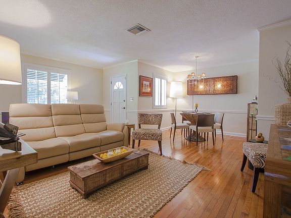 Every inch has been reworked & updated to maximize space & create a sophisticated yet comfortable dwelling. Palm trees, extensive plantings & dramatic lighting create a welcoming entrance. Brick paver drive and walkway lead to the front door. Oak hardwood floors, crown molding, plantation shutters & new paint throughout. Kitchen was recently remodeled with refinished cabinetry, Italian quartzite counters, stainless steel appliances, travertine backsplash, chef's sink, and new tile. A master suite was created with bright windows, spacious closet, and sliding doors to a rear sundeck. An adjacent Balinese inspired bath has double vanity, double shower, & custom cabinetry. A half bath was created to make the 2nd bedroom guest friendly, and a bonus den/office/sitting room is located at the front of the home. A 14x11 sunroom provides year round living space and entertaining space. The custom, fenced rear yard has a large paver courtyard for tables and chairs, and a resort style landscape. Private and relaxing, the backyard is large enough for pets, entertaining or a pool addition. New roof 2005, new AC 2004, electric upgrade 2009, exterior paint 2010. Transferable termite bond. Whole house water treatment system. Walking distance to A rated Blankner Elementary & Boone High school, blocks to hospitals, downtown shopping & restaurants.