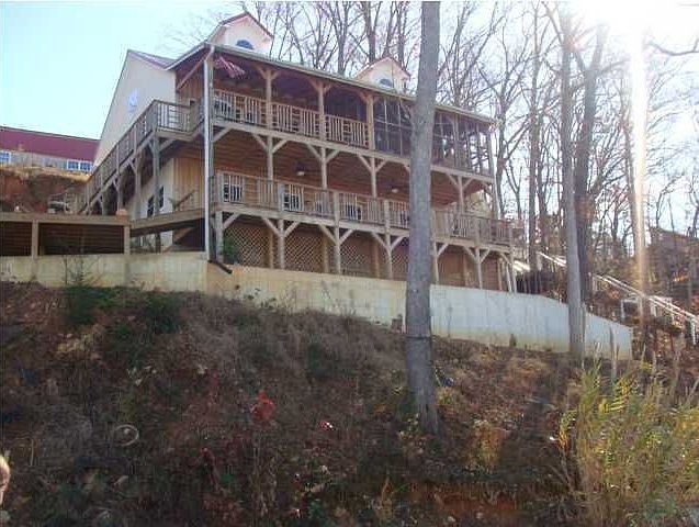 Logan Martin Lake year round water home. Sawmill pine plank floors,walls and ceilings throughout.Beautiful open floor plan from the kitchen to the living area for family gatherings. Master is on the main level with a deck overlooking some of the best water on the lake. Wonderful loft that sleeps tons of family and a partially finished basement that has a bath and a two rooms useable for bedrooms already. This could easily be a 5 bedroom home. Detached 3 bay garage that has plumbing for a bath and kitchen .This could very easily be convted into a mother in law suite or extra living space. Or use it to restore cars like the current owner.Tax records show over 3000 square feet in home. This is a must see and only minutes from Pell City. If you demand year round water this is the place for you.Motivated to sell and this is already a deal!!!