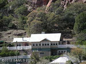 PRIME PROPERTY IN OLD BISBEE... Awesome location at the end of Roberts. 3 car parking in driveway. Many mature trees, high desert plants & rock scape. PRIVATE YARDs, huge front yard. PANORAMIC VIEWS from the Divide to ''B'' Hill. 2/3 bedroom, NEW DUAL PANE WINDOWS in family room with loads of built-ins & bunk beds on top. Double Cell Blinds on most windows & Plantation Shutters in the Living Room. SPA & OUTSIDE SHOWER. GORGEOUS OAK FLOORS!!! Built-in China Cabinet in the Dining room. UPDATED KITCHEN 2012! Workshop and Garage below home. THIS HOME IS METICULOUS!!! THE SETTING IS ENCHANTING... MOVE IN READY!!! 1531 sq. ft. per the tax records, but it doesn't include the family room square footage. Irregular shaped lot. All facts & info to be verified by the Buyer. This home appraised in 2013 at $275,000. The slightly larger house across the street recently sold for $279,000.