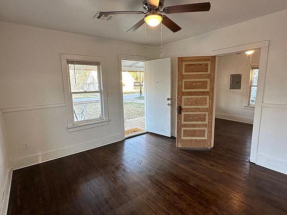 Charming, freshly updated 2-bedroom, 1-bath home featuring a tiled bathroom, granite countertops, a new roof, ceiling fans and refinished hardwood floors. Enjoy the comfort of a central air conditioner. Tenant responsible for all utilities. This non-smoking, pet-free residence also boasts a spacious backyard. no parking allowed in the back yard. Conveniently located at 444 S 51st West Ave, Tulsa, OK 74127 renter pays all utilities no smoking, no pets, no cars in the back