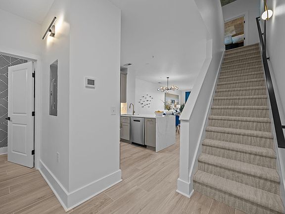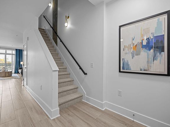 This beautifully updated top-floor condo is truly move-in ready and absolutely stunning. Located in the highly sought-after Palladium Plaza, you'll be just steps from theater, dining, concerts, and all the best that downtown living offers. The upgraded kitchen features a stylish backsplash, stainless steel appliances, and sleek quartz countertops with a striking waterfall edge—perfect for cooking and entertaining. The spacious family room opens to a private outdoor balcony through a large sliding door, filling the space with natural light. A first-floor powder room with a chic tile feature wall adds both convenience and style, while wood plank-style tile flooring enhances the entire main level. Upstairs, the generous primary suite includes a sizable walk-in closet and an updated ensuite bath with a double vanity and a beautifully tiled shower with frameless glass door. The secondary bedroom also offers its own ensuite bath featuring a bold, modern tile shower—ideal for guests or a roommate. This unit includes two parking spaces in the secure, gated garage (second space requires an annual fee). Don't miss this rare opportunity to own a gorgeous, updated condo in one of downtown's most desirable communities! HVAC 2022