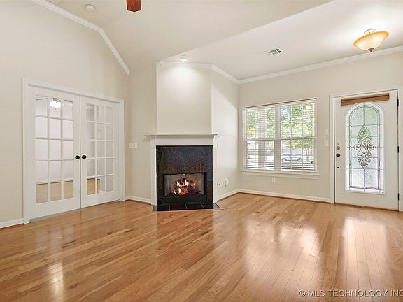 WONDERFUL single story patio home 2 Beds / 2 baths and 2 car garage in the desirable Forest Creek Patio Homes Subdivision! Homes are Stone Veneer & Stucco Exterior. Welcoming covered porch and beautifully designed Glass Front Door. Cozy stone fireplace with gas logs inserts and rolled marble tile surrounds the beautifully located fireplace. Spacious and great open floor plan with Living and Dining Room Combo. Extra high ceilings throughout. Granite countertops in the spacious kitchen & bathrooms and rolled Marble backsplash in the kitchen. Tons of cabinetry storage and surface area. Lots of recessed lighting and stainless steel appliances. Ceiling fans in all rooms. Master bedroom with an architectural Tray Ceiling and a large master bath with a separate bathtub and shower with a spacious vanity and dual sinks. The 2nd bedroom on the front has a full bathroom. The subdivision is close to restaurants, shopping, highways and hospitals, "its a hidden jewel in south Tulsa" on 81st Street just east of Garnett on the edge of Tulsa City limits.