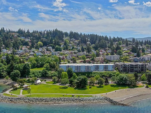 Experience the panoramic views of Bellingham Bay and the breathtaking year-round sunsets from this exceptional residence! Just a stone's throw away from Boulevard Park & conveniently situated on the trail to Fairhaven & downtown Bellingham, this main level unit offers effortless access with no stairs & a generous floor plan spanning 1474 square feet, 2 bedrooms and a den. Whether you're unwinding in the spacious living room or taking in the views from the private deck, relaxation & natural beauty are always at your fingertips. The entire building recently underwent a remarkable $4.3 million exterior upgrade, featuring new siding, windows, balconies, and a roof. The condo amenities include an outdoor pool, game room, and sauna.