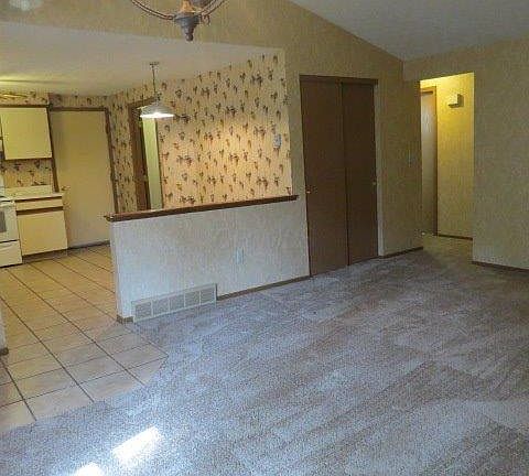 Looking for a place to start? Look no further! This is a really nice single family home with a little over 1,000 square feet, 1 car attached garage and turn key ready. Very clean with all new carpet throughout & ceramic tile in kitchen & baths. Nice sized living room with vaulted ceiling. The kitchen is open to the living room and has tons of cabinet space and all of the appliances, including washer & dryer in the roomy laundry area. Good sized full bathroom plus half bath in the one bedroom. You will enjoy sitting on your 3/4 season room, with new roof, nestled in the very private fenced in yard with lots of shade and greenery. Deck needs some love and if you don't like wallpaper, easy to remove! EZ2C