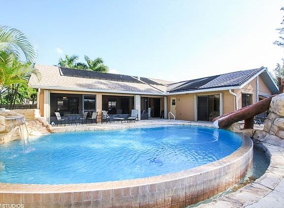NEW AC JUST INSTALLED IN THIS HOME WITH AN INCREDIBLE CANAL/BASIN VIEW of Defender Canal ! CUSTOM POOL WITH EXTREME WATER FEATURES !!! ASSESSMENTS PAID!! This 4 bedroom, 2 bath, Formal Dining Room, 2 car garage concrete block pool home is centrally located just minutes from schools, shopping and restaurants. Some of the many features this home has to offer are as follows: grand double door entrance way, custom marble flooring, updated wood cabinetry with granite counter tops in kitchen and baths, stainless steel appliances, custom hood vent, faucets, fixtures, vaulted ceilings, tray ceiling in master bedroom, oversized master and guest bathrooms with dual sinks in both, custom windows, solar heated custom rock formation pool featuring a negative edge, spa, waterfalls, water slide and a beautiful view of large fresh waterfront canal that opens into a lake. Feel like you are on vacation every day!