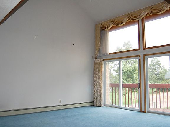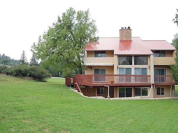 from the living room and dining room, private balconies on two of the upper level bedrooms and a lower level covered patio all on a private, half-acre lot with beautiful shade trees in a quiet setting. There are plentiful windows to bring the beauty of the outside in. The kitchen boasts Corian countertops and oak cabinetry. The master bedroom has vaulted ceilings, a large, walk-in closet and private bath. The hot water furnace was replaced 3-4 years ago. This “firewise” home has a metal roof and stucco siding. With some new flooring and basic updates, this would be an absolutely amazing home!