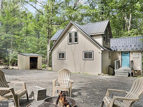 This newer constructed cabin sits on over 1 acre and is bordered by thousands of acres of West Virginia State game land. There is a run of water on the far side of the property during seasons with more precipitation and can be viewed from the expansive deck. The cabin was rebuilt from the ground up in 2014 by a Pennsylvania Amish construction company. The new build includes new interior and exterior walls, insulation, framing, roof, electrical, and plumbing. The woodstove in the great room is original and is situated in a bump-out addition with a double-walled chimney. Kitchen cabinets are custom-built, and the oversized farm sink was salvaged from a property near Lake Raystown and refinished by a Veteran-operated business in Maryland. The exterior features Hardie composite vertical siding with Hardie composite trim. The roof is metal with snow guards and gutter leaf covers. In April 2024, a very impressive new 10,000kw Generac generator was installed with a transfer switch to seamlessly provide coverage in the event of an outage. The generator includes an automatic transfer switch and remote access, not requiring the owner's presence at the property. The home includes a tankless water heater and has been designed to be fully winterized if needed. All plumbing, both kitchen and bath, is on a slight grade with valves for quick and easy drainage. The refrigerator type was carefully selected to support the possibility of colder temperatures. The best part of all - this cabin comes fully furnished! You have to come and experience the feel of the home and its surroundings - nature at its best! The upstairs loft/bedroom sleeps 4+. The driveway and fire pit area were enlarged this spring with extra gravel spread. Wildlife such as deer, foxes, turkeys, raccoons, chipmunks, and various birds are a welcome sight from either the expansive deck, while enjoying the fire pit, and sitting in the great room looking out the 2 story windows. Community amenities are priced with a one-time fee to join, then a choice of 2 different memberships. Class B membership is a one-time fee of $3,150 at the time of registration, then $1,495 annually. This includes access to swimming, tennis, pickleball, spa (with additional costs for services), gym, and much more. Golf is available in package A at an increased price, available upon request. We invite you to visit and see the tranquility and beauty inside this home, meticulously decorated and cared for. Currently being utilized as an Airbnb and very profitable, records are available upon qualification and request. Complete Homeowner Association ammendments and covenants available upon request.