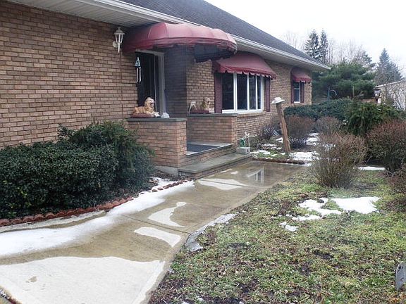 Impressive Construction describes this Solid Brick Ranch Style Home. Custom Built situated on 2 +/- Acres of Open & Landscaped Yard, just outside of town. Home features Italian Marble Flooring, Corian Counters, Enclosed 4 Season Sun Room, Finished Lower Level Area. No Expense Spared with the Construction of this Home! Includes 2 Car Attached Garage plus Detached 2 Car Heated Shop or Garage Area. Many Upgrades and Very Convenient Location to All Local Amenities and Higway Access! Price Reduced to $250,000!