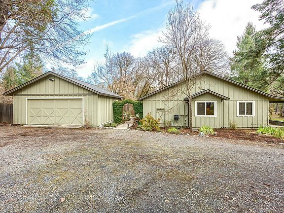 Enjoy unexpected luxury on this 5+ acre estate with single level home, thoughtfully tailored to provide a unique combination of function & style. Notable details include the use of tile, wood & stone in the main home. The circular floor plan offers seamless integration to the inviting spaces with reclaimed wood accents, granite counters & quality finishes throughout. The currently rented cottage offers a private space for guests or tenant & the incredible multi-purpose shop houses Airbnb or guest space with theater room & sauna! In addition to the 2-car garage there are additional outbuildings, RV hookup, deer-fenced yard & organic gardens with auto-sprinklers, walkways & land suitable for animals. Enjoy the established orchard, outdoor kitchen/patio area & seasonal creek with bridge leading to the naturalized portion of the property. This exceptional home is in the Applegate Valley, conveniently located in the town of Williams with general store, Post Office & weekly growers markets!