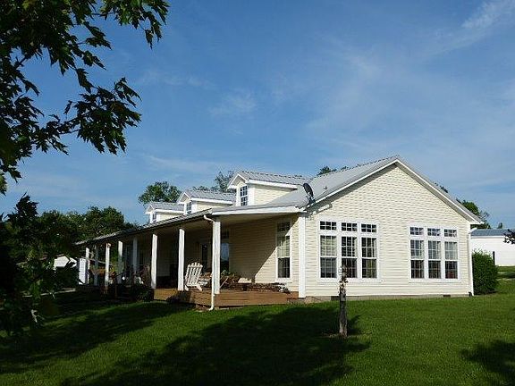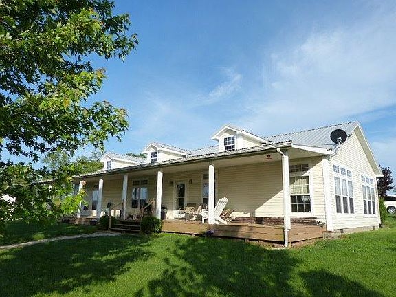 This spacious ranch style home on 10 acres offers privacy and a beautiful view plus an enormous (10' x 70') covered porch to enjoy it from. 9' ceilings and large windows further contribute to the open & airy feeling of the interior, especially in the large kitchen / family room combo with built in entertainment center. The master bedroom suite offers a private bath with separate shower and garden tub plus a private exterior entrance to it's own patio. Recent updates include the metal roof, heat pump, dishwasher and water heater. A garage, with workshop & attached sheds and large run-in offer storage for cars / equipment and livestock. The front pasture has a natural flowing stream, plus there are frost free hydrants and an automatic stock waterer. Call today and plan your visit.