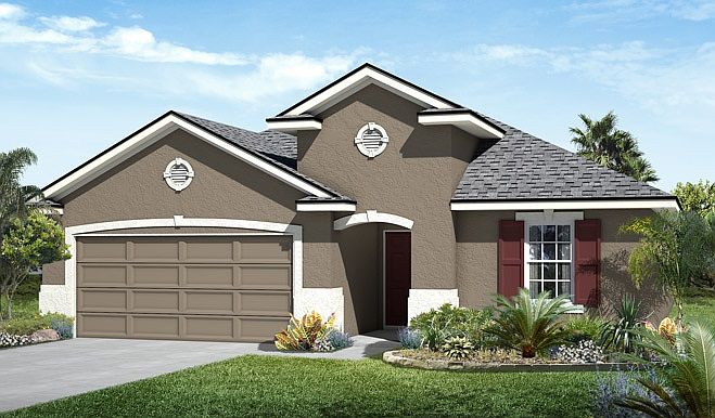 The Alan is a ranch home with the perfect blend of style and livability. The great room is ideal for family get-togethers and is adjacent to the kitchen and eat-in breakfast nook. Owners will appreciate a private master suite with large walk-in closet.flows into the nook and gourmet kitchen with a center island, double ovens and 18'' x 18'' tile flooring. The luxurious master suite is separated from the other bedrooms for privacy and includes a deluxe bath with a separate tub & shower. Plus double sinks and an oversized walk-in closet. Located in St. Johns County just minutes away from I-95, US Route 1 and beautiful St. Augustine beaches, Treaty Oaks offers a plethora of community amenities and nearby attractions. Residents will enjoy a community clubhouse & pool & recreational fields!