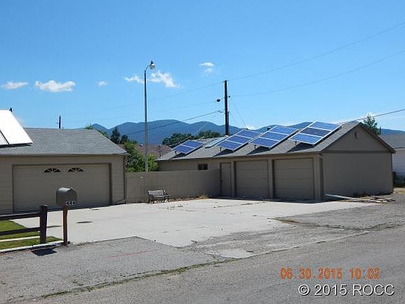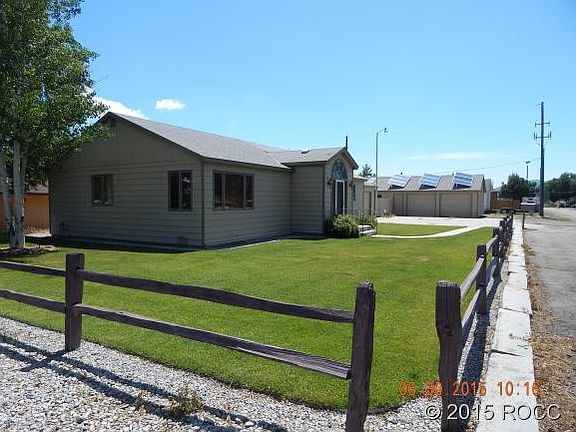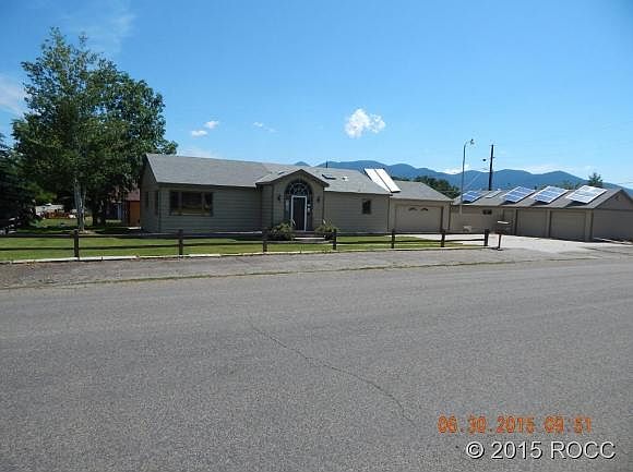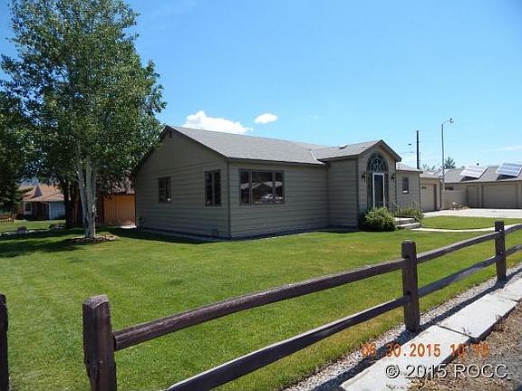 Great home in town with lots of room for toys. This 3 bedroom 2 bath home is in very good condition. Solar electric system provides the homes electricity needs and is fully self contained. There is also a solar water heating system for the homes hot water usage, a two car attached garage the is insulated, finished, and heated, an additional two car detached garage with workshop and storage area. Beautiful landscaping, lush yard, fenced patio area and cement driveway on a corner lot with trees.