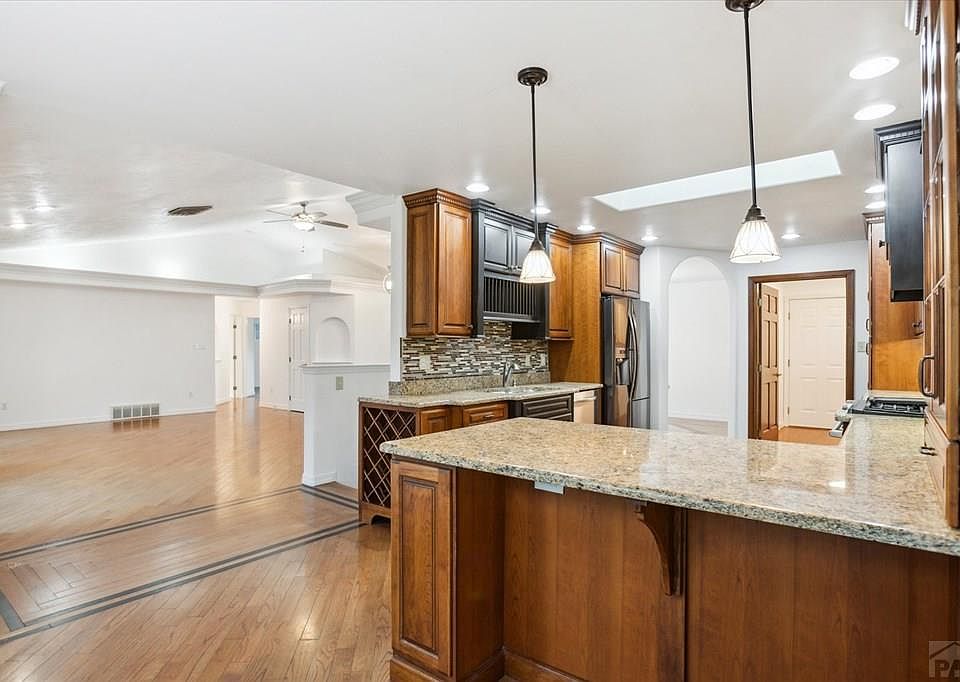 Live the Golf Course Dream at 444 W Archer Dr. Where every day begins with sweeping fairway views and ends with golden Colorado sunsets. This 5-bed, 3-bath ranch-style home backs directly to Desert Hawk Golf Course, offering the perfect blend of comfort, space, and lifestyle. With two cozy fireplaces, an open-concept layout, and abundant natural light, the interior is built for both relaxing nights in and effortless entertaining. The kitchen flows seamlessly into the main living area, while the finished basement provides extra room for guests, hobbies, or a home gym. Step outside to your private patio and take in the peaceful views, or head out for a round of golf just steps from your backyard. Located in desirable Pueblo West with quick access to walking trails, restaurants, and Lake Pueblo. Whether you're an avid golfer or just love wide open space, this home is where lifestyle meets livability.