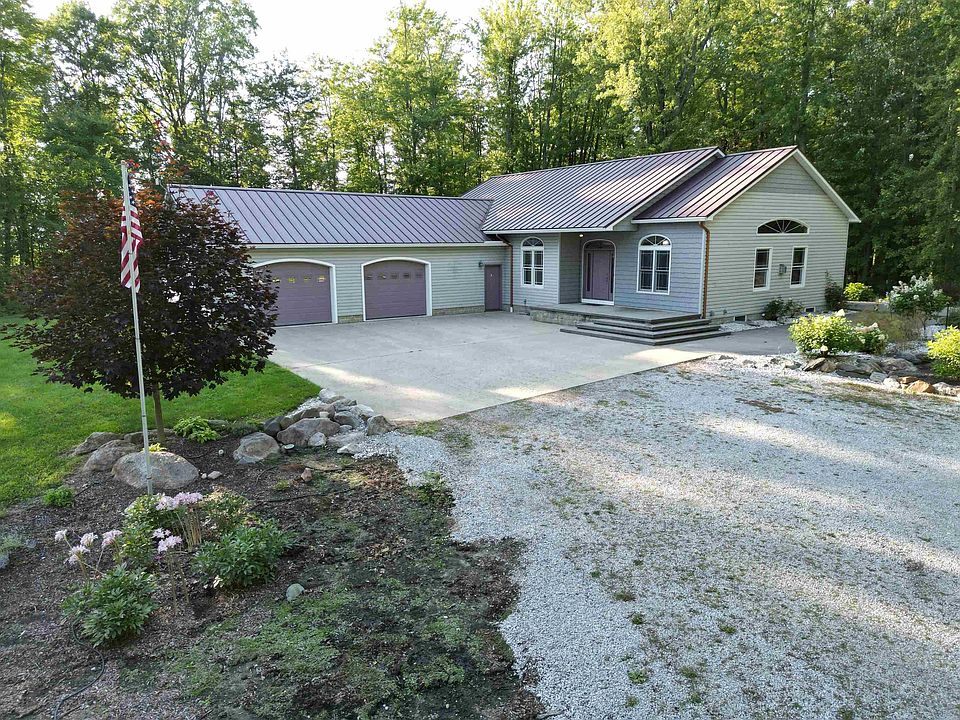 Exquisite 2 Bedroom Home on 15 wooded acres with Pond and Cabin. Discover your dream retreat nestled on 15 acres of serene beauty, just a stone's throw away from Sandusky. This stunning 2-bedroom, 2 ½-bath home offers a blend of luxurious living and natural splendor, making it a truly exceptional find. Built in 2014, this modern gem is designed to capture your heart with its thoughtful features and breathtaking surroundings. Key Features: 2 bedrooms on main floor plus 2 lower-level bedrooms with an egress window in the main area and a kitchen, great room and full bathroom with separate entrance from the garage for added privacy 2 ½ bathrooms, including a master en-suite with 3 huge closets Expansive 15-acre property with a picturesque pond and captivating coy fish Cathedral ceilings with an open-concept design for a spacious and airy feel. Exquisite chandeliers throughout the home. Primary bedroom en-suite also has a cathedral ceiling. Central air and 2 heating systems (heat pump plus lp gas) for year-round comfort Shaker shingle siding by front door and a striking metal roof for timeless elegance and abundant natural light highlighting stunning marble floors on the main level Modern kitchen with an open floor plan, perfect for entertaining and you will love your granite countertops and soft close cabinets Convenient main-floor laundry for easy living Attached 2 1/2 car garage with heating, insulation, and drywall. Charming campsite cabin with water, electric & septic for additional space, relaxation and outdoor adventure. The property beckons with its: Tranquil pond, perfect for unwinding and enjoying nature's beauty Lush landscapes and 15 acres of endless exploration. Stamped concrete wrap-around patio for outdoor gatherings. Paved road access for convenience and easy commuting. Eyebrow windows throughout the home for added natural light. 2 driveways, one for the main home & one for the cabin that's joined together through the woods with a curved charming driveway.