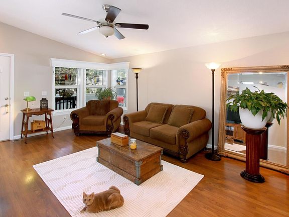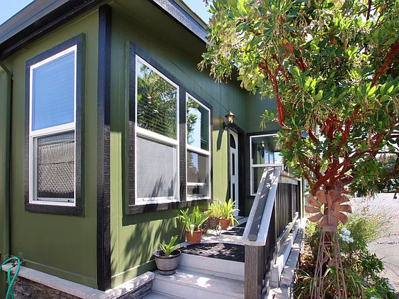 Come take a look .. you'll never want to leave! Great location in an All age Park in award winning Scotts Valley School district. Walk to store, parks and entertainment. Well maintained landscaping throughout the park with ponds, Clubhouse, Pool and more. Karstan modular home built 2005. The "VIlla" model is a top of the line with; Wood Valances over all the windows, Quality vinal flooring in Kitchen and bathrooms, newly carpeted bedrooms, fresh paint inside and out. No homes behind this home.