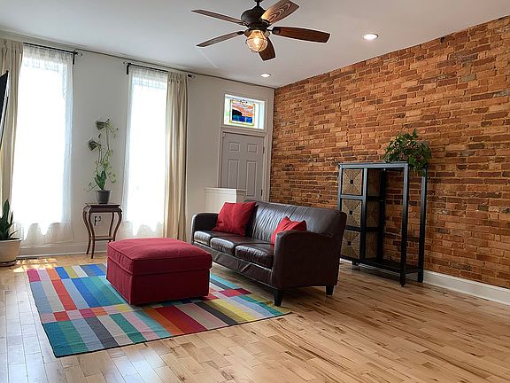 Move-in Ready!! New Everything!! The structure was completely gutted for remodeling down to the brick. New in 2018: electric, plumbing, heat & A/C, drywall, cabinetry, sinks, mirror, lighting, stainless steel refrigerator, stainless steel dishwasher, 5-burner gas stove, microwave, washer & dryer, ceramic tile floors in the full bathrooms, ceiling fans in all bedrooms and the living room. Hardwood floors in every room and 9-foot ceilings upstairs and downstairs. Gorgeous exposed interior brick wall in the living room. The spacious kitchen has a remarkable stone backsplash, granite countertops, and a large pantry. Enjoy morning coffee or evening meals in the private landscaped garden with an irrigation system for the perennials, dogwood, and exploding zinnias around a beautiful flagstone patio. Plenty of extra storage found in the master bedroom Murphy closet, kitchen pantry, hallway linen closet, and partially finished basement.
