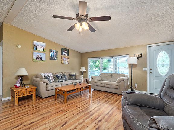 Your own little paradise, Country setting little privacy at an affordable price. Clever Schools! New roof! Large kitchen with double ovens, granite island, many cabinets and food pantry! Nicely updated includes 3 bedrooms, 2 full bathrooms, 2 living areas, gas log fireplace is ventless. Wow this double wide is painted nicely with dry wall!! and has an addition (second living area), sitting on a spacious 1.4 acre lot at the edge of the neighborhood. Plenty of room to relax inside and out, plus a 2 car garage, with remote opener. Family room is pleasant with a ventless gas log insert. Fenced yard with dog area, an awesome back deck to enjoy coffee on and a new pool deck ready for you to enjoy! Not to mention the storage sheds and apple trees, pear trees, walnut tree, and blackberries. And with the permanent foundation, this home even qualifies for conventional, FHA, or VA financing, making it very easy to call your own. Come take a look!