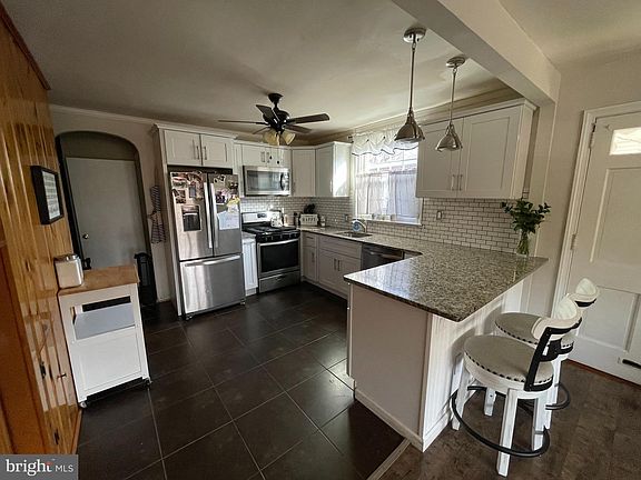 Welcome to this solid brick 2 Bedroom twin in the Holmes section of Ridley Township! Enter through your main door from the front street into your open concept Living Room and Kitchen. The Kitchen renovations were completed in 2018 wowing you with granite counters, white cabinets and stainless steel appliances and hardware. The Living Room is full of natural light with 3 front windows perfect for the kids and dogs to watch the seasons go by. Just a few steps down the hall you will enter into your full bath featuring a skylight. The secondary bedroom has a large closet with double rods perfect for all your clothing and storage. The Main bedroom sits at the rear of the house with two windows and newer carpets. Take a walk down the steps to the partially finished basement and you will be greeted by a faux brick wall with two storage closets and the cutest reading nook. The basement allows so many opportunities for your living needs from a home office, man cave or toy room. The remaining areas of the basement will feature your mechanicals, washer and dryer and a perfect built-in work bench. The rear entrance of the basement allows you to have ground level access to your driveway, garage and rear fenced in yard. Did you notice the rear alley was a dead end just a few doors down, so no through traffic to worry about. The roof was recoated in 2021.