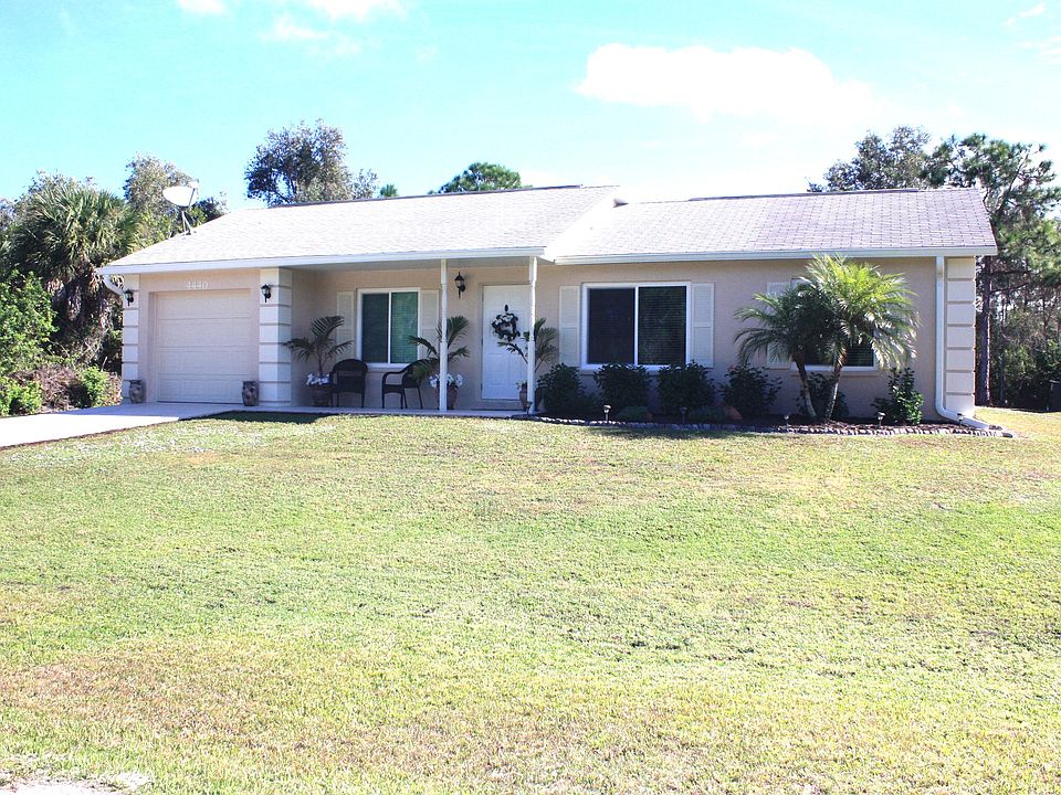 Cozy 2 bedroom, 2 bath, 1 car garage in Gulf Cove which has a low optional HOA fee for the community park and boat ramp on the Myakka River. A 10x10 shed was installed in 2017 and lots of additional cabinets in kitchen, laundry room and garage for endless storage. PGT windows-series 5500-IMPACT Resistant horizontal sliders installed in 2018. Therma-Tru Series 5500 IMPACT Resistant windows in 2018 and IMPACT Resistant outside doors. New garage door with reinforced side bucks in 2017. This house sits just one street from the Myakka State Preserve. Survey is available upon request. Septic tank inspected and pumped in 2017. New septic tank top installed in 2018. Washer, Dryer, and Freezer does not convey.