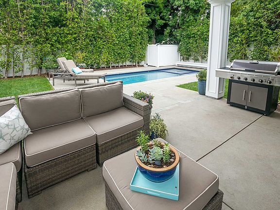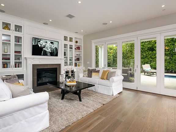 Newly built in 2013 this gorgeous Cape Cod has it all. From the brushed white oak floors to the generous family spaces, from the private pool and rear yard to the splendid and spacious Master suite. The linchpin of the home is the kitchen/great room and living areas which boast an oversized Carrera marble island, open gathering space and a splendid fireplace (one of three). The 15 foot wide glass doors to the patio and pool retract completely for maximum indoor-outdoor flow, an ideal feature when entertaining. The master suite features a large balcony overlooking the pool, 2-sided fireplace, large soaking tub, lavish shower and spacious closet. All other bedrooms in this beautiful offering are en-suite, the home features a versatile den/office with a cozy fireplace and clever pocket doors. Dual zone HVAC, alarm system, fully integrated audio system, 6 camera security system, wired for HDMI, Ethernet and is Control4 smart home system ready. Close to Ventura, and many Valley attractions.