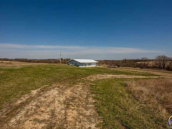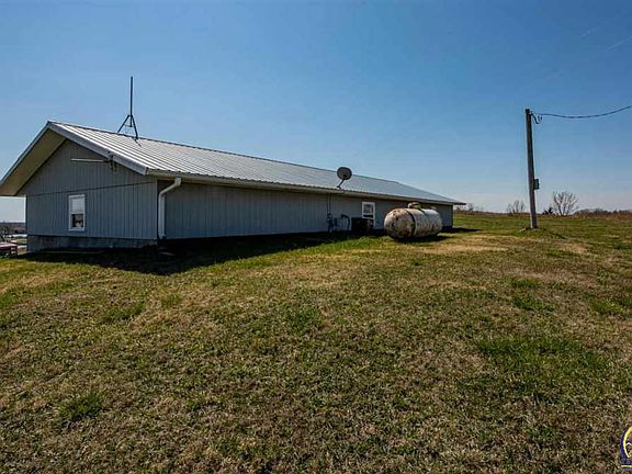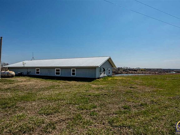 This very energy efficient home offers lots of room to explore on 18 acres M/L and a great view of the Topeka skyline. No exterior maintenance with a metal roof. Every room has at least one window for natural light. Over sized closets, fresh paint on the interior, and great high speed internet. Most of the property is in hay ground. The propane tank has been freshly filled. Come and check out this country get away, close to town, with plenty of Privacy from the neighbors.
