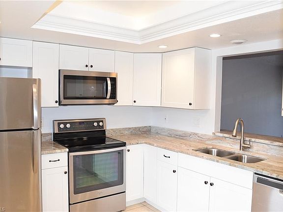 1st floor unit completely remodeled with stainless steal appliances, new kitchen and bath cabinets with granite counters, new paint, new doors, baseboard, and much more. The unit very spacious with 2 bedrooms and 2 bathrooms with a private front screened in lanai with custom Gulf access homes across the street. 2 designated parking spots and easy access to Del Prado blvd, just minutes from the downtown area giving you easy access to restaurants, shopping, and entertainment. Set up your private showing today and place your application before it's gone.