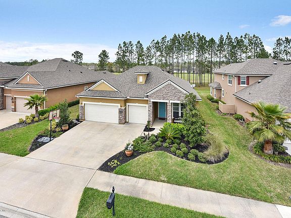 Pristinely maintained and Ready NOW on hole 5 on the golf course! 4 Bedroom, 2.5 Bath, additional flex room currently used as a 5th bedoom, Upgraded tile throughout, new hardwood floors and lighting. Open Kitchen with new marble backsplash, massive breakfast bar with new tiled knee wall open to Great Room overlooking a large Covered screened Lanai for entertaining, 3 car garage, extended paver patio, upgraded laundry room, drop zone and 8' doors throughout. Everything Included makes this home move-in ready: granite countertops, GE Clean Steel dishwasher, range, microwave, 25 cu ft side by side refrigerator w/ice & water on door, blinds, Laundry Room w/W&D and utility sink. **CDD A-Bond has been paid off cutting your fees in half. Free golf cart with full price offer. A must see!