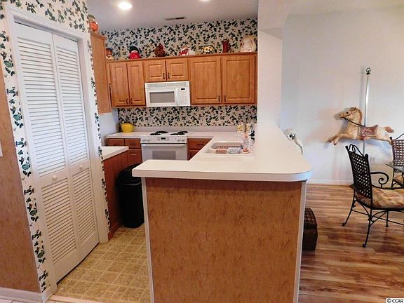 Absolutely, amazing first floor, furnished 2 BR/ 2 BA unit directly on waterway. As you walk in the front door, enjoy spectacular direct waterway views from kitchen, dining room, family room, master bedroom and tiled (4-season) screened porch. Unit boasts open, airy, spacious split bedroom plan and is being sold tastefully furnished. This first floor unit allows you to not only enjoy the "NO Stairs" phenomenal views, but also ease to walk right out your back door & venture watching boats, jet ski's along the waterway, taking walks along the waterway & community, and enjoying the quiet, peaceful setting of The Moorings. Unit has so many upgrades - tiled foyer, kitchen & beautiful hardwood laminate flooring in bath, bedrooms, family room and tiled 4 season back porch, which overlooks a wide view of the waterway. Kitchen is quite large & features a breakfast bar, brand new cabinets in kitchen (11/2017) with lifetime transferable warranty to new owners. Kitchen comes complete with range, microwave, refrigerator, dishwasher, (& yes washer & dryer). Unit boasts plantation shutters throughout. this unit is located on the waterway in the Valley Golf Course at East Port in Little River, home of phenomenal restaurants, Blue Crab Festival in May & Jazz & shrimp Festival in the fall, plus only minutes from North Myrtle Beach and all it has to offer.