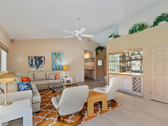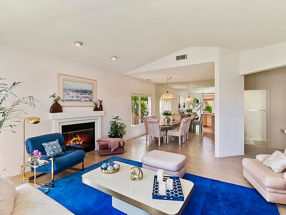 It is all right here at ''The Grove'', where luxury living meets unparalleled convenience in one of Palm Desert's most pristine non-gated developments. This prime location boasts an open concept floor plan and a host of other must-have features that are sure to impress. Step inside and you'll be greeted by a grand double door entry that sets the tone for the rest of this stunning home. Entertain guests in the formal dining room or whip up a quick bite in the convenient kitchenette, complete with granite countertops and stainless steel appliances. You'll love the sleek and modern feel of the ceramic tile floors and plush carpeting in the bedrooms, while the vaulted ceilings add an extra touch of grandeur to this already impressive space. With a 3-car garage and a serene and quiet neighborhood, you'll have plenty of space and peace of mind to unwind and relax. Sip on your favorite libations at the wet bar or indulge in some much-needed R&R in the primary bathroom's separate tub and spa. Warm up on chilly nights by the cozy fireplace or take a dip in the refreshing pool and spa on sunny days. With annual dues of just $304, which covers landscaping common areas and road maintenance and is paid through property tax, you'll have more than enough funds left over to explore all that this world-class neighborhood has to offer. Take a nice walk or jump on your bike and head to El Paseo for some of the best shopping and dining in town, or catch a show at the McCallum Theatre