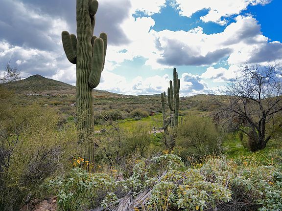 HUGE price reduction and $395,000 of Instant Equity! The best place to build your dream home, or homes. Just 7 miles North of Scottsdale, sits 27.98 acres of high Sonoran Desert called Harmony Hollow Ranch, an idyllic property surrounded on three sides by the Spur Cross Ranch Conservation area, a 2,154 acre parkland where the Sonoran Desert climbs into the mountains of Tonto Nat'l Forest. The lowland portion contains a mesquite bosque with cottonwood, willow, and sycamore trees. The upland portions are abundant with stunning saguaros, palo verde and jojoba. This is the first time in over 50 years that the property is available for sale to the public. Appraised at $1,895,000 in August, 2019. Area artists built the home on the property, adding their artistic flairs in many mediums. The front gate is a Richard Mocco sculpture, and will remain on the property. There is a large garden area with caged, raised beds and watering system that conveys with the property. Please see the photos and video. See https://harmonyhollowaz .com