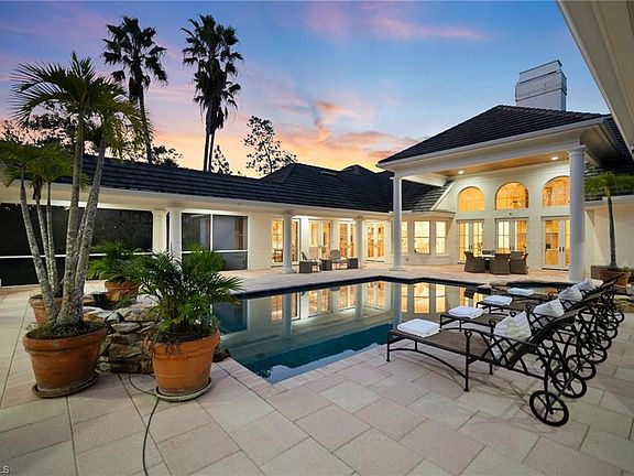 Classic Luxury meets a beautiful location and privacy! Nestled in the prestigious gated community of Naples Club Estates, adjacent to Naples National Golf Club, with only 28 private 3/4 acre homesites! This unique neighborhood is situated around man made lakes and walking paths. A classic meticulously maintained home with soaring ceilings, travertine marble, wood look tile floors, beautiful chandeliers and plantation shutters! In addition, the 4 spacious bedrooms all have full private baths, an oversized den with fireplace, living room with fireplace, dining room with fireplace, large family room and 3 half baths to include a pool bath! With over 5300 Sq Ft. there is plenty of space to entertain all of your family and friends. The open floor plan allows owners and guests to appreciate the extraordinary view throughout the living room, family room, kitchen, breakfast nook, primary bedroom and of course the lanai!! Enjoy very minute of the spectacular oversized landscaped yard and lanai with custom pool and spa! Naples Club Estates offers exclusive private gate access to the award winning Naples National Golf Club, where memberships are optional. Perfectly located only 15 minutes to downtown 5th Ave Naples and 25 minutes to the beautiful Marco Island. This IS where you want to live!