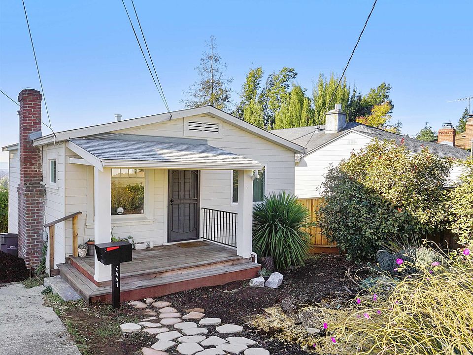 This is a great opportunity located in the Redwood Heights Neighborhood! You cannot beat the amazing views looking upon all of the San Francisco Bay! Enjoy views of the Golden Gate Bridge, Downtown San Francisco and the picture perfect sunsets from each room of this charming home that was built in 1924. So much character! This 2 story home offers a ton of potential with some little TLC. As you step in off the front porch, you will see the original hardwood floors throughout the family room, dining area and bedrooms. The living room offers an original wood burning brick fireplace. As you head to the downstairs area, there is additional living space and a full basement! The driveway is shared with the neighboring home at 4445 Davenport. Plenty of street parking as well. There is room to add your own garage and a possible ADU to this amazing piece of property. Located close to Reinhardt Redwood Regional Park, Redwood Gate, Chabot Space & Science Center and local schools. Call for more details and to schedule a showing appointment.