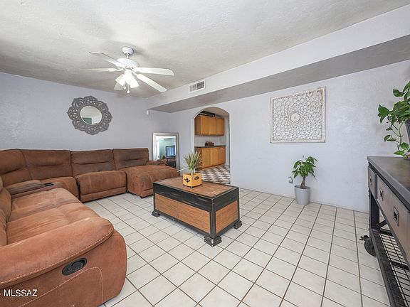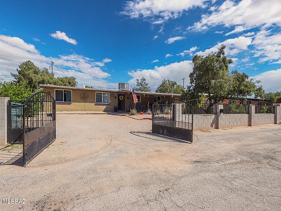 Great opportunity to purchase a spacious 4 bedroom/2 bath home on a large .18 acre lot! Over 2000 sq ft, if you add in the bonus room! All ceramic tile, no carpet. Block wall with a double wrought iron front gate. Covered front patio with RV space available. No HOA! Mature vegetation includes apple, pomegranate & lemon trees! Double back gate has access through the alley. Close to Davis Monthan Air Force Base & only 15 minutes to the University of Arizona. Convenient central location near a variety of shopping centers, restaurants & parks. Refrigerator, extra freezer & shed convey. Alarm system can transfer if Buyer assumes the lease. Otherwise, Seller will remove it at closing. Bonus room was not permitted & is approximately 12'4''X11'8''.