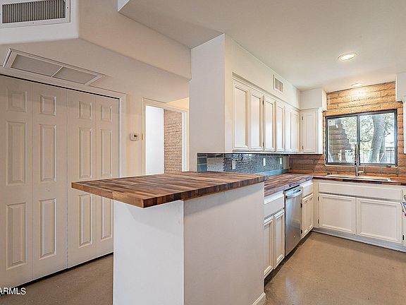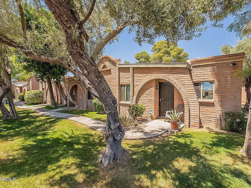 STOP.THE.CAR!! This is a unit like no other. Super cool vibe from the moment you enter. Raised entry, Polished Concrete floors showing off the aggregate. The kitchen wall was opened and tankless water heater provided the extra kitchen space.Open Kitchen with Butcher Block counters, Kitchen Aide Pro Style Gas Range, SS appliances. LED wafer ceiling lights, Living room boasts full length Exposed Aggregate wall, french doors with opening side lights, Bath has new tub, Carrera Porcelain tile surrounds, new vanities with glass and marble backsplashes, mirrors, fixtures, faucets and LED lighting. Both Bedrooms have vaulted ceilings with amazing storage above the closets, and yes, you could store a Kayak up there!! Professional ''Smooth Wall'' ceiling and wall finishes, new windows, New AC unit!! You must see this unit. Over $80,000 in improvements!! This unit is located in a nice private corner with a grass front area and big trees. Utilities should extra low due to the exposure. Nobody looking into your yard, this unit has privacy!! Lets talk location!! Park is just to the east of the unit with ball fields, tennis courts, basketball courts. Papago Mountain Preserve Park is just down the street with lots of hiking trails. Then go north and you have Costco (cheaper gas), and a plethora of shopping and restaurants. Lower Arcadia near Old Town Scottsdale, Tempe Town Lake, ASU Main Campus, Downtown Phx, Stadiums, Art District, Roosevelt Row, Sky Harbor International Airport, Light Rail, Phoenix Zoo, Botanical Gardens, Camelback Mountain....need I say more!!