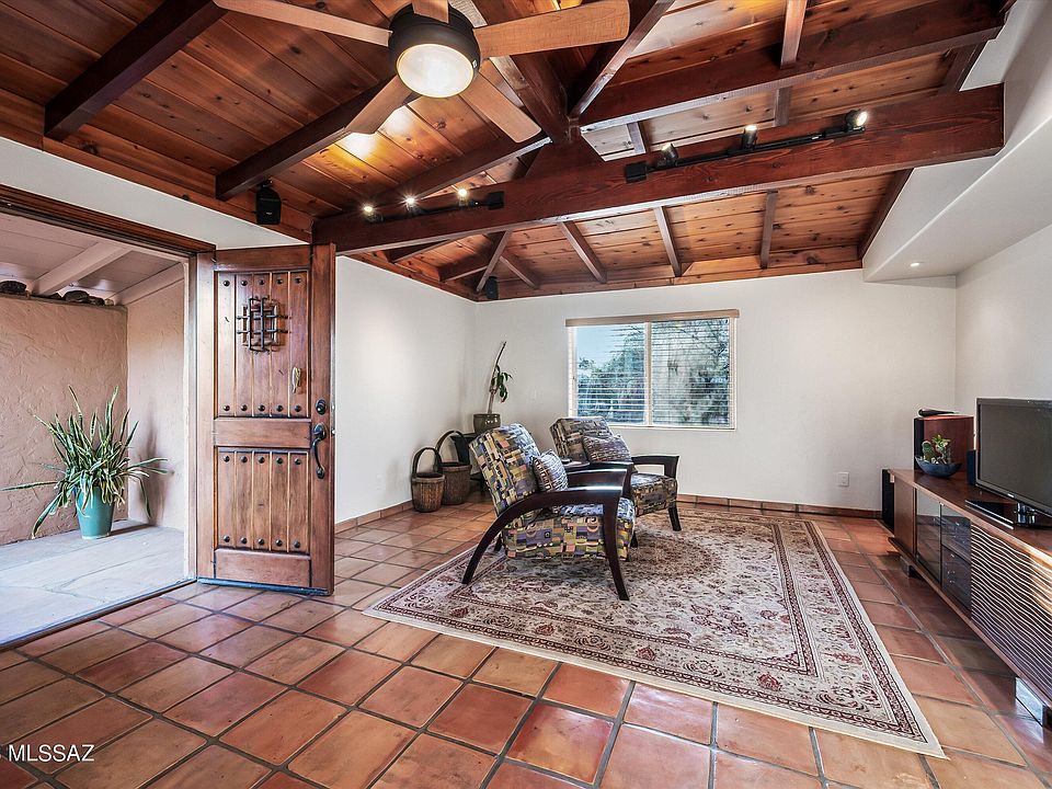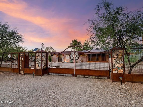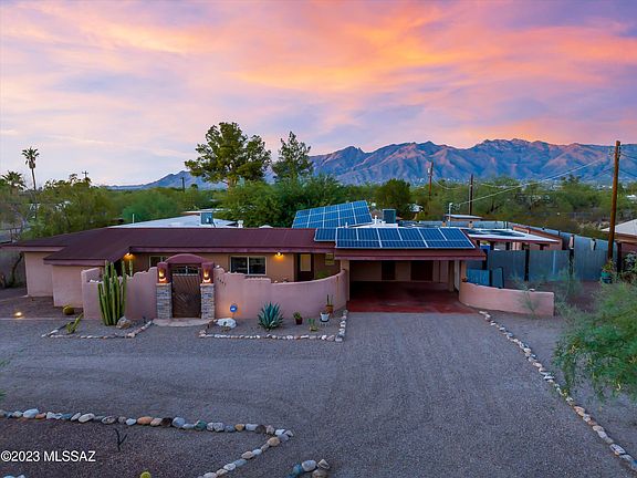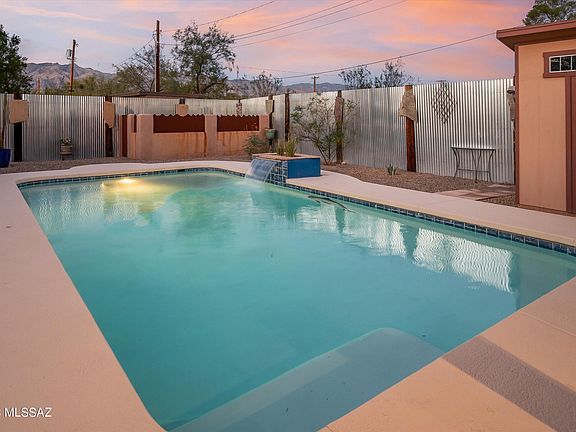 Seller will review offers between $675,000 and $700,000. Your oasis in the heart of Tucson! This home offers a serene retreat with modern amenities, energy-efficient features, and ample outdoor space, making it a highly desirable residence in the San Carlos neighborhood. Here's a summary of the home's impressive attributes: exterior features include courtyard entry with two locking gates, fully fenced with different types of fencing including see-through metal, stone cage columns, and corrugated/railroad tie fences, multiple outdoor covered spaces, brick paver patios, fire pit, mountain views with a north-facing backyard, RV 220 hook-up for electric and water, enclosed front courtyard, owned solar for the entire house and pool. See More Tab. Gated sports pool with solar heating, water feature, and outdoor shower. Interior features include open living and dining area with exposed wood beam ceilings, three bedrooms and two full baths with a split bedroom plan, updated kitchen with quartz countertops, stainless steel appliances, gas range, and soft-close drawers/cabinets. Stunning owner's suite with a walk-in closet, separate tub, and multi-head steam shower, French doors to the backyard from every bedroom, all with in-glass blinds, dual pane windows and doors, ceiling fans throughout, and an attached floor safe. Additional features include enclosed pool mechanicals, extensive Kool Deck surrounding the pool area, and Generac 16kW standby generator with a steel enclosure. Seller is related to listing agent.