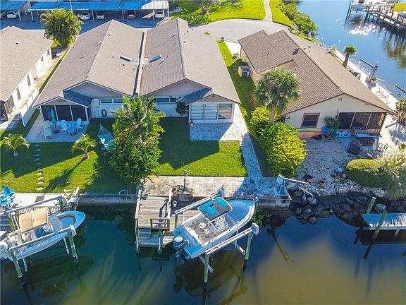 Back on market! Buyer financing fell through so here's your chance to obtain a charming and affordable waterfront home in the highly sought after waterfront community of Gulf Harbors Woodlands! This home has been beautifully updated with high gloss real wood flooring, crown molding, spacious kitchen with quality appliances, and breakfast bar. Open floor plan with a wonderful view of waterfront! Launch endless boating memories from the 10,000 lbs capacity boatlift with unobstructed access to the Gulf via the deep North Channel! Newer roof and other peace-of-mind updates! Gulf Harbors Woodlands community also includes a large heated community pool, tennis courts, club house, boat ramp, and more! Join the Yacht Club and meet up with friends to watch the sunset from inside the full restaurant and lounge! If you thought the waterfront and tropical lifestyle was out of your reach, here is your chance to live it
