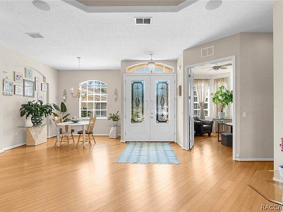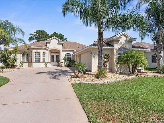 Welcome to this spacious 2004 Windjammer Pool home, perfectly situated between the 2nd and 3rd tees of the Hernando Oaks Golf Course. Boasting 3 bedrooms, 2.5 bathrooms, an office, formal dining area, a formal living room and an inviting family room. This home offers the ultimate in comfort and style. From the cozy den/study to the family room, there is plenty of space to relax and unwind. The kitchen offers a refrigerator, a gas cooktop, a built-in double convection oven, wood cabinets, Corian countertops, an island, a pantry closet, and a breakfast bar. The master suite is its own private retreat with an ensuite bathroom which includes a garden tub, dual vanity, beautifully tiles walk in shower, a wet closet and pocket doors that enclose the commode and that leads to the master suite. Two guest bedrooms provide cozy accommodation, while the guest bathroom offers a tub/shower combo. A third half bathroom offers direct access to the pool area. The family room has a gas fireplace, large windows for natural light, and doors opening to the serene pool area. The lovely landscaping includes a charming butterfly garden. Additional highlights and updates include a three-car garage, a gas hot water heater (05/2023), a dishwasher (11/2023), a front door (5/2024) and A/C and furnace (06/2020). Hernando Oaks' amenities include an 18-hole Scott Pate course spanning 6,905 yards, a pro shop, a restaurant, and social membership. Don't miss out on the chance to make this your own - call for your private showing today!