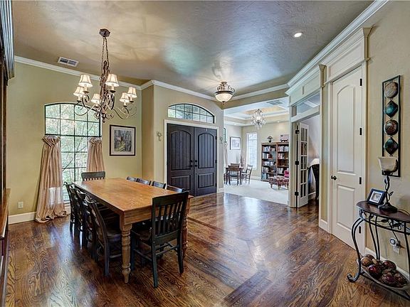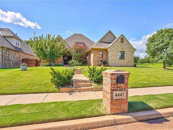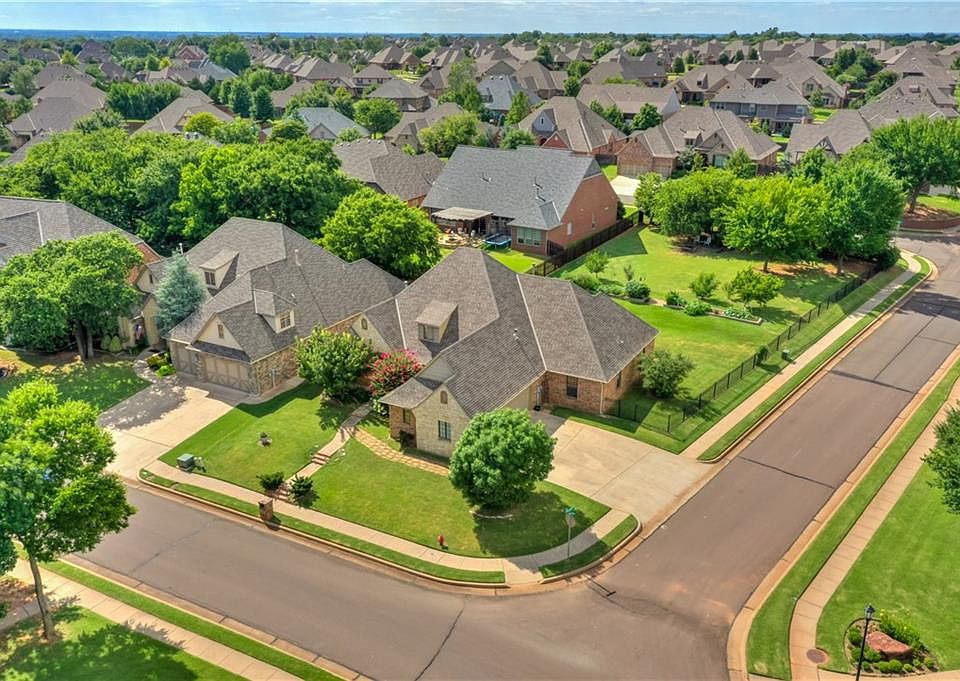 Welcome to family living in the distinctive Edmond Community of Belmont Park! This remarkably inviting residence provides the perfect balance of comfortable living & ultimate entertaining. A true masterpiece in all ways with 4 bedrooms, study, 2 living areas, 2 dining room, and a Florida room. The main living area provides plenty of gathering space around the fireplace. This kitchen is the heart of this home featuring center island, built-in gas stove and opens to the living room. Luxury master suite, with its own patio access, tray ceiling, separate vanities, jetted tub, and huge closet. Spacious secondary bedrooms. Formal dining and study off entry features wood floors. Second living is the perfect space for hobbies. Plenty of storage throughout. Enjoy the beautiful surrounding scenery with walking trails, neighborhood pool & ponds. Sellers own the lot behind this home and is available for purchase with this property. Florida room not included in sq ft - 252 mol. Welcome Home!