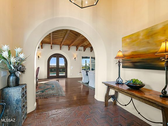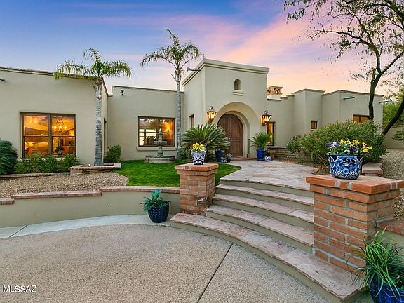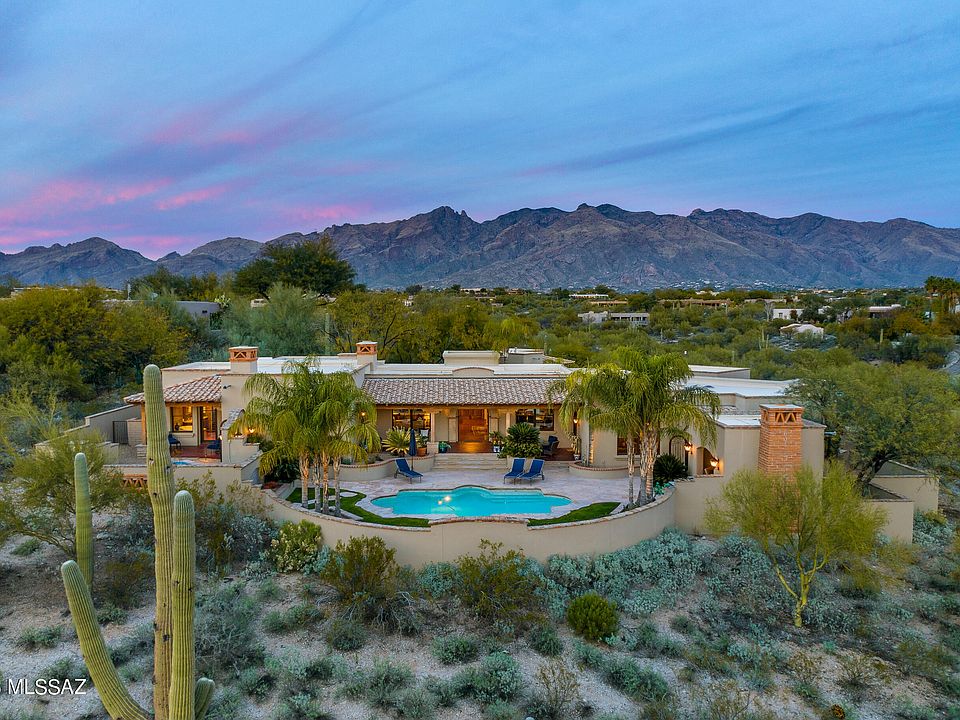 The Old World architecture of this beautiful compound stimulates the imagination. Designed in the old Southwest Mission style, echoing some of the details of the Arizona Inn, there is a calmness and serenity throughout with enviable views and privacy.Unique details include wide plank wood floors, rough sawn plank and beam ceilings with corbels, 4 fireplaces suit the Southwest casual yet classic style. Main house has 4 ensuite bdrms . Separate 512 sq.ft. guest casita offers serene mtn views, full bath, covered patio. Main kitchen w/ 11 stainless Viking appliances, secluded pool overlooks sweeping city views, large enclosed ramada w/FP, + long covered back porch accessed from the great room, owners bdrm + den/family room. RARE attached 3 car garage + separate 2 car g
