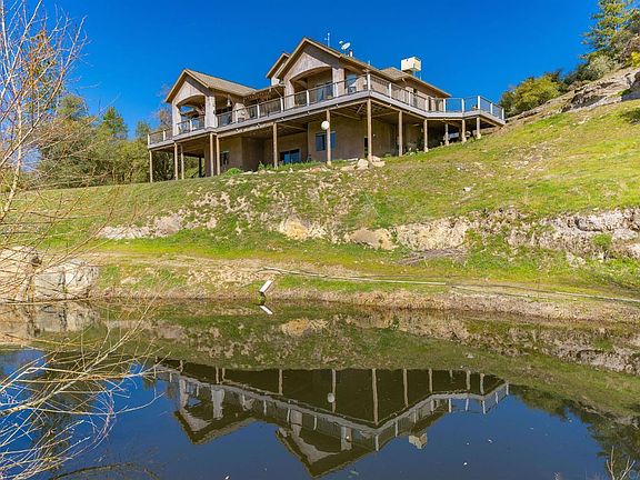 This beautiful, private Custom home offers it all. Amazing expansive views to the Valley below and the Sierras above. 5 bedrooms, 3 baths, over 3378 SqFt total with two kitchens.(2 bedrooms and second kitchen are in the downstairs apartment with private patio and entrances) Huge decks offer majestic outdoor entertaining spaces and the perfect location to enjoy all 4 season. Custom features are offered throughout this exclusive home. An Open floor plan offers the perfect space for all your entertaining needs. Two ponds, plant able acreage for vineyards, The Utica Flume and a seasonal creek run through potions of the property including two natural springs. A huge spacious 40x60 metal building is prime for all your toys and storage needs . This property offers room for anything you desire. A must see and one of a kind.