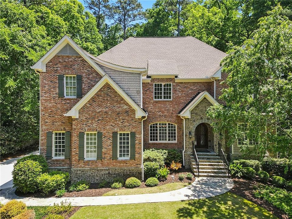 Cobb county schools and lower taxes in Vinings! All brick custom dream home sitting on a 0.8 acre with beautiful curb appeal and very spacious luxury living with open spaces, 10 ft. ceilings and private backyard. Room for a pool. Owner's suite on main and also upstairs. Open foyer with marble flooring, separate, living room with fireplace, separate dining room, family room with fireplace and French doors, great room with vaulted ceilings and fireplace and French doors, all overlooking the backyard. Open kitchen concept with oversize island and eat-in kitchen and white cabinetry. Separate breakfast room. 2 Laundry rooms, one on main and one upstairs. Plantation shutters, mud room, elevator shaft, home theatre, exercise studio, finished basement and much more. Ample space everywhere. Four en-suite bedrooms upstairs and one en-suite bedroom in basement level. Cochise membership tennis and swim club is an option. This home is a must see.