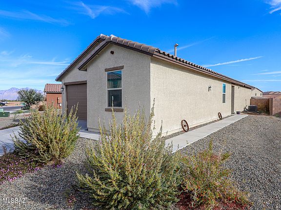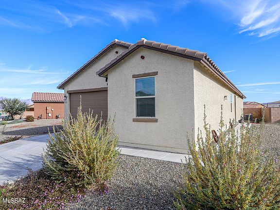 This is it! Welcome to the desirable Bella Tierra subdivision. This 3 bedroom, 2 bath home with a den was built in 2020. Enjoy the open floor plan with 9ft ceilings, upgraded tile throughout and neutral color palette. The upgraded kitchen package features granite countertops, an island with large sink, gas cooktop, wall microwave and oven, and large walk-in pantry. The Owners suite is large with mountain views and bathroom with dual vanity. The Laundry room is good size with washer/dryer included. Step outside on this large lot to the backyard with mountain views and is ready for you to make it your oasis.. Close to DMAFB, UofA Tec Park, neighborhood park and walking trails and much more. Assumable VA loan at 3%. Welcome Home,